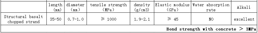 【product description】 Structural short cut basalt fiber is a surface ribbed needle shaped reinforcement material formed by combining continuous basalt fibers with corrosion-resistant materials. Mainly suitable for asphalt mixtures, when used in concrete, the adhesion and tensile strength with concrete are only about 1% of that of structural short cut basalt fibers. 【Product Features】 1: It has the characteristics of corrosion resistance, similar density to concrete, easy dispersion and mixing, and impact resistance. It is used for bridge deck paving and replacing steel fibers in expansion joints to solve problems such as steel fibers being prone to corrosion, polluting the environment, forming rust expansion, easily damaging tires, and affecting driving safety 2: Structural short cut basalt fibers are used to enhance the strength and toughness of concrete, achieving a transition from brittle failure to ductile failure. 3: The cost-effectiveness of structural short cut basalt fiber reinforced concrete is basically equivalent to that of adding steel fibers 4: The mixing process of structural short cut basalt fiber concrete is consistent with that of steel fiber concrete: the construction process is consistent with that ofordinary concrete 【Product Application】 Mainly suitable for asphalt mixtures, when used in concrete, the adhesion and tensile strength with concrete are only about 1% of that of structural short cut basalt fibers. 【Product Specification】